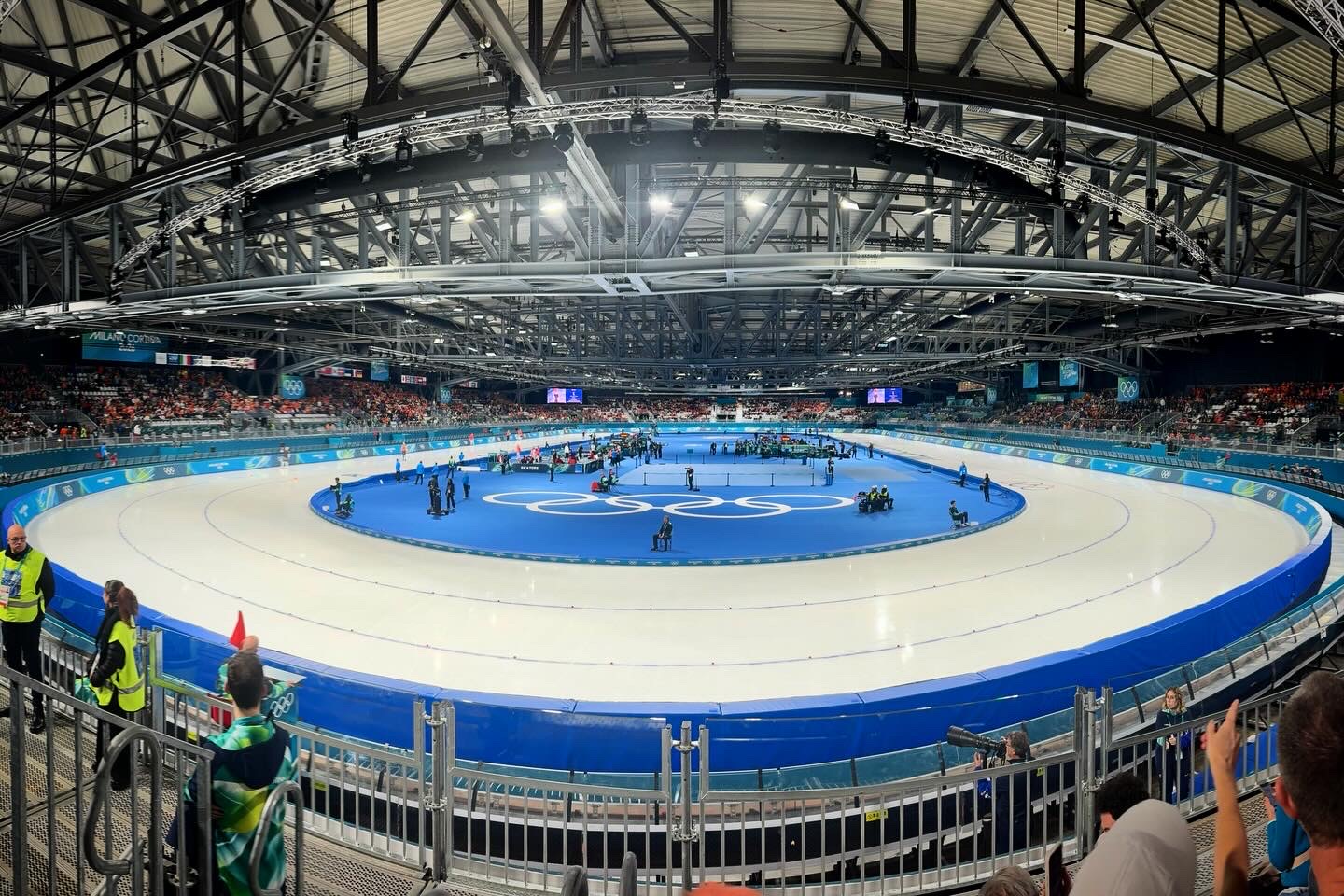 Op de tribunes is nog steeds veel oranje zichtbaar, maar ook wat meer andere nationaliteiten dan gisteren. Rintje Ritsma staat een tijd voor ons op de tribune te kijken. De kinderziektes zijn er ook een beetje uit in het stadion: de microfoon van de starter stoort niet meer en het scorebord geeft wat meer informatie. Klinkt best knullig voor de Olympische Spelen maar een testevenement is blijkbaar niet genoeg.